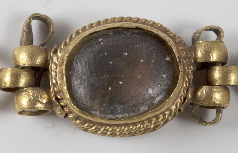 În accepțiune largă, engolpionul este un obiect căruia îi sunt atribuite puteri apotropaice, fiind purtat la gât și suspendat în dreptul pieptului. În epoca bizantină acesta are forma unui medalion sau a unei cruci în interior cu relicve sfinte, fiind purtat de înalți demnitari laici dar mai ales de clerici. În Biserica Ortodoxă, engolpionul este însemnul înalților ierarhi, episcopi, mitropoliți sau patriarhi, de cele mai multe ori fiind împodobit pe o parte cu imaginea Răstignirii lui Iisus și pe cealaltă cu cea a Maicii Domnului cu Pruncul. Pe piesa de la Dinogetia este prezentă doar scena Răstignirii lui Iisus.